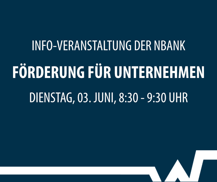 Einen Einblick in die vielfältigen öffentlichen Förderprogramme gibt die NBank bei einem Online-Infotermin am 03. Juni. Ziel ist es, die Unterstützungsmöglichkeiten für Ihr Unternehmen aufzuzeigen.