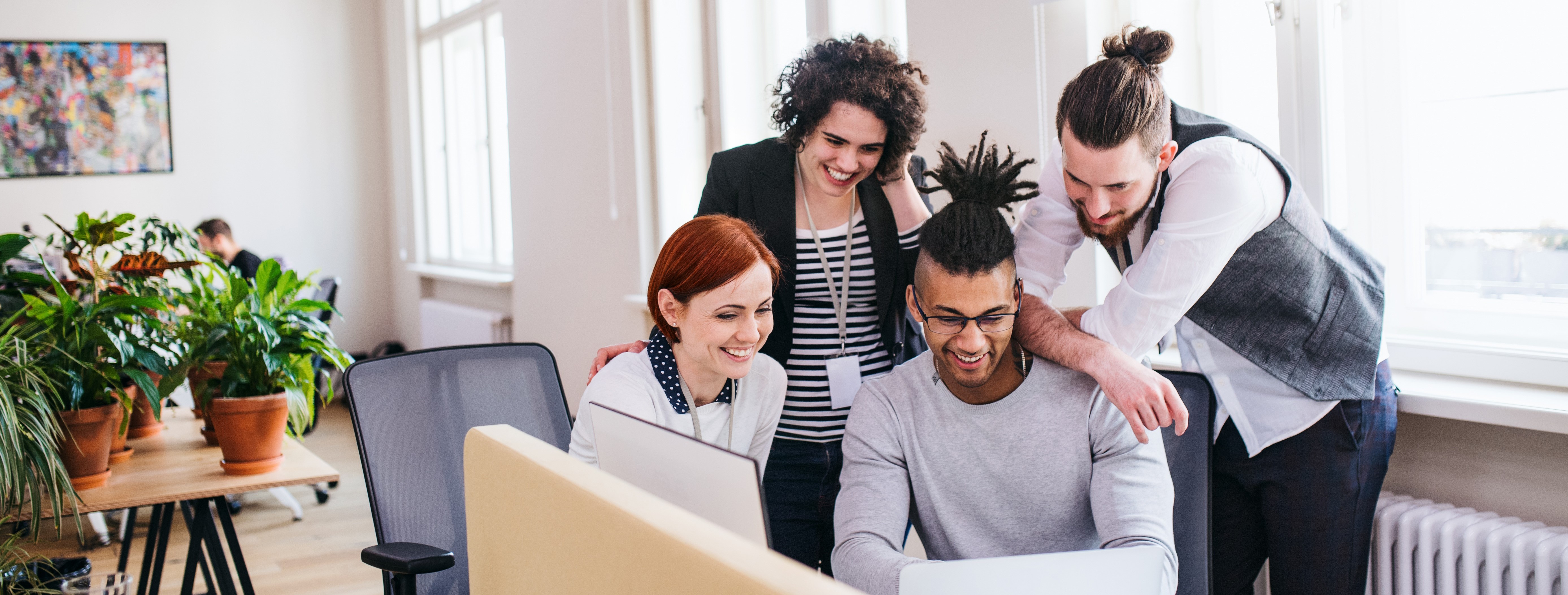 - Ein ansprechendes Arbeitsumfeld mit modernen, technischen Arbeitsmitteln