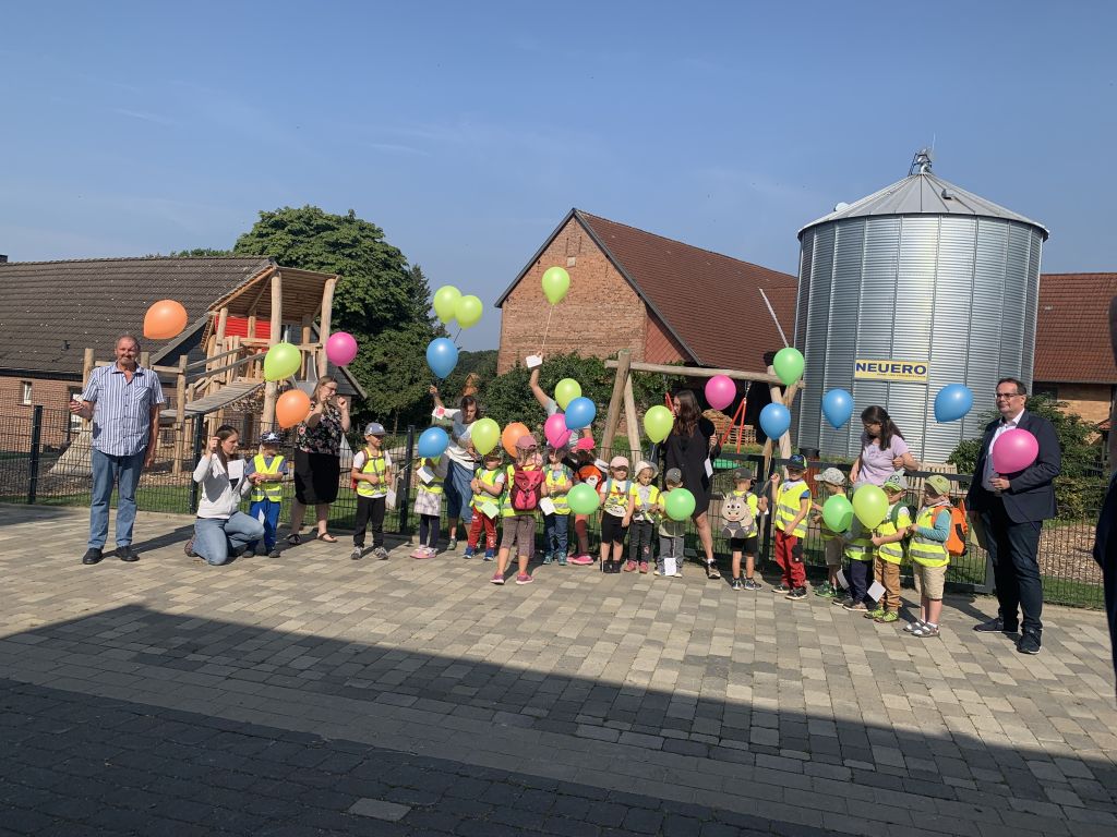 Zur feierlichen Eröffnung stiegen biologisch abbaubare Luftballons in den Himmel, begleitet von bunten Karten, die die Kinder mit ihren Eltern gestaltet hatten. Die Baukosten von rund 95.000 Euro wurden dank LEADER-Förderung und zusätzlichen Spenden, die unter anderem durch die Dorfmoderatorinnen gesammelt wurden, finanziert.