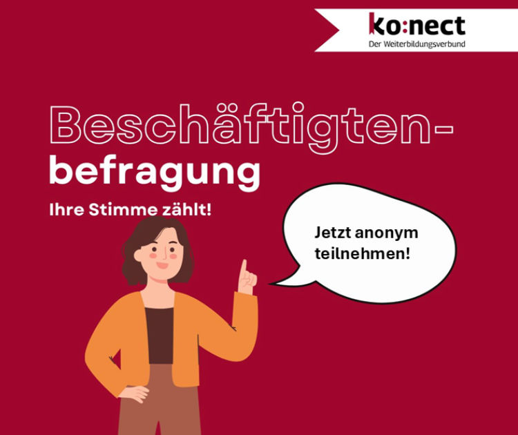 Umfrage zu den Weiterbildungsbedarfen von BeschäftigtenMit einer Online-Umfrage möchte der Weiterbildungsverbund ko:nect die Bedürfnisse der Beschäftigten rund um das Thema Weiterbildung eruieren. Konkret geht es um die Flexibilität der Beschäftigten und ihre Einbindung in Transformationsprozesse. Die Umfrage dauert ca. 10 Minuten. Weitere Details zur Umfrage und zum Weiterbildungsverbund haben wir für Sie zusammengefasst. Bitte leiten Sie die Umfrage auch an Ihre Belegschaft weiter. Vielen Dank! |