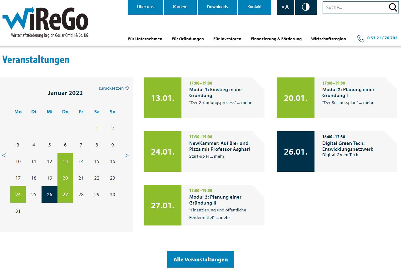 Die über 80 Seiten und Unterseiten auf www.wirego.de machen den Umfang des WiReGo-Leistungsportfolios deutlich. Aktuelle Informationen zu Fördermitteln, zu diversen Themen der Unternehmens- und Gründungsberatung, zum Standort sowie zu verfügbaren Gewerbeflächen bis hin zu AnsprechpartnerInnen oder auch offene Stellen galt es möglichst übersichtlich zu bündeln und schnell auffindbar zu machen. Eine Herausforderung, die das Team von Maco-Vision in Wernigerode technisch und gestalterisch umgesetzt hat.